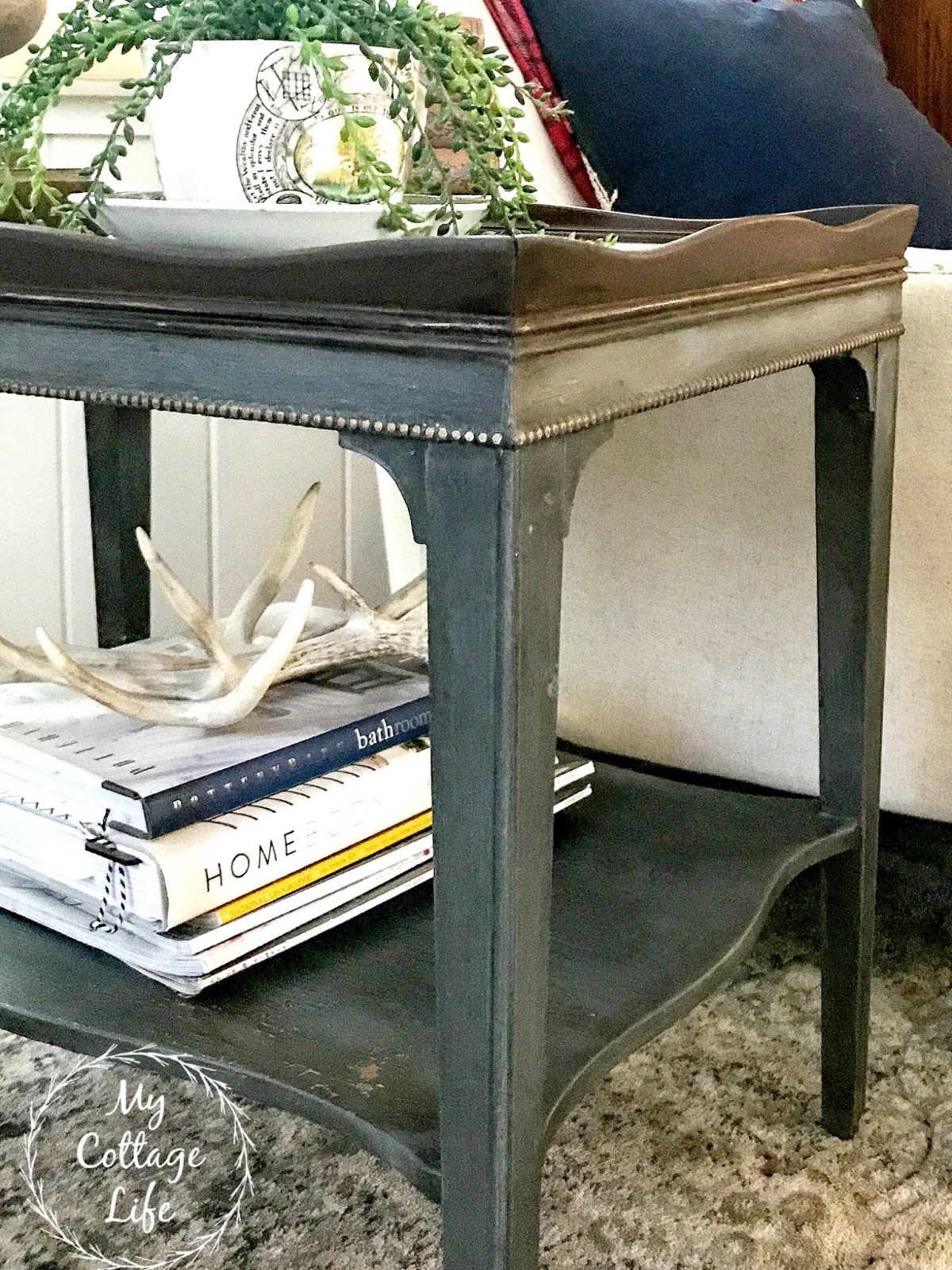 When I interrupted my refinishing last week to give the tiered stand a new look, I also decided it was time to update a side table that was no longer giving me joy as a plain white table.